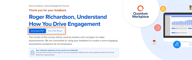 If you are not able to reaccess the ME Report or do not have a Quantum Workplace account, it's important to either download or email the ME Report to secure the report for future reference.