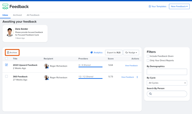 Archive Feedback to better organize your Feedback Inbox.