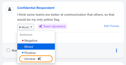 - Click the comment's current sentiment to expand a drop-down of all possible sentiments
