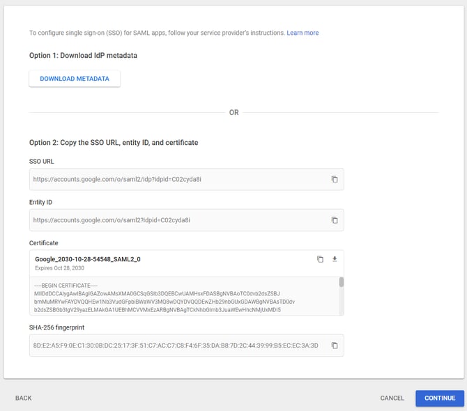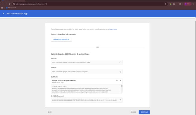 On the Google Identity Provider details screen, click Download IdP metadata.