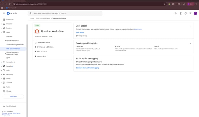 Follow the steps below to configure Google SAML SSO for your Quantum Workplace account.