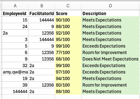 For best results, complete both the Score and Description columns. You may import only scores or only descriptions if needed.
