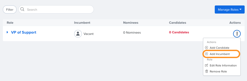 Add an Incumbent to an Existing Role