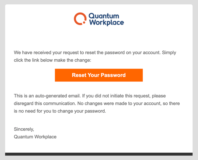 New users can set up their accounts in Quantum Workplace via the automated welcome email delivered by Quantum Workplace.