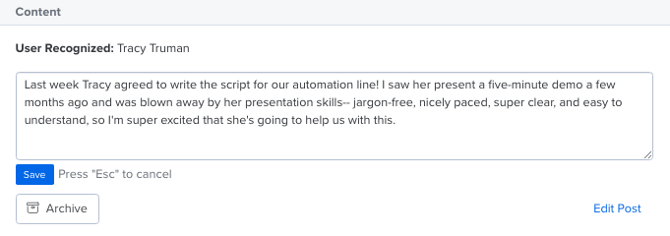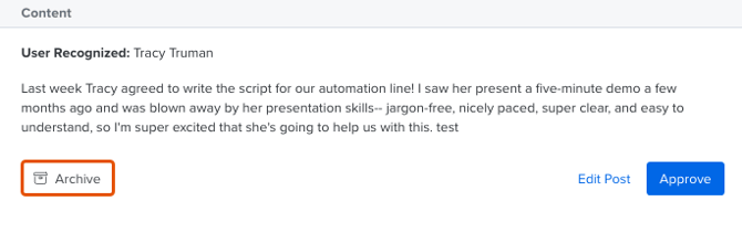Archive a post to delete the post from the organization's newsfeed.