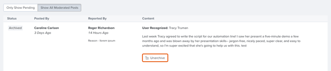 Archive & Unarchive Flagged/Reported Posts