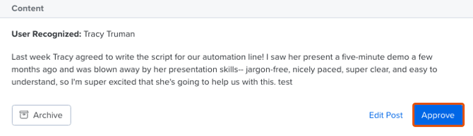 - Click Approve to return the post to your organization's newsfeed