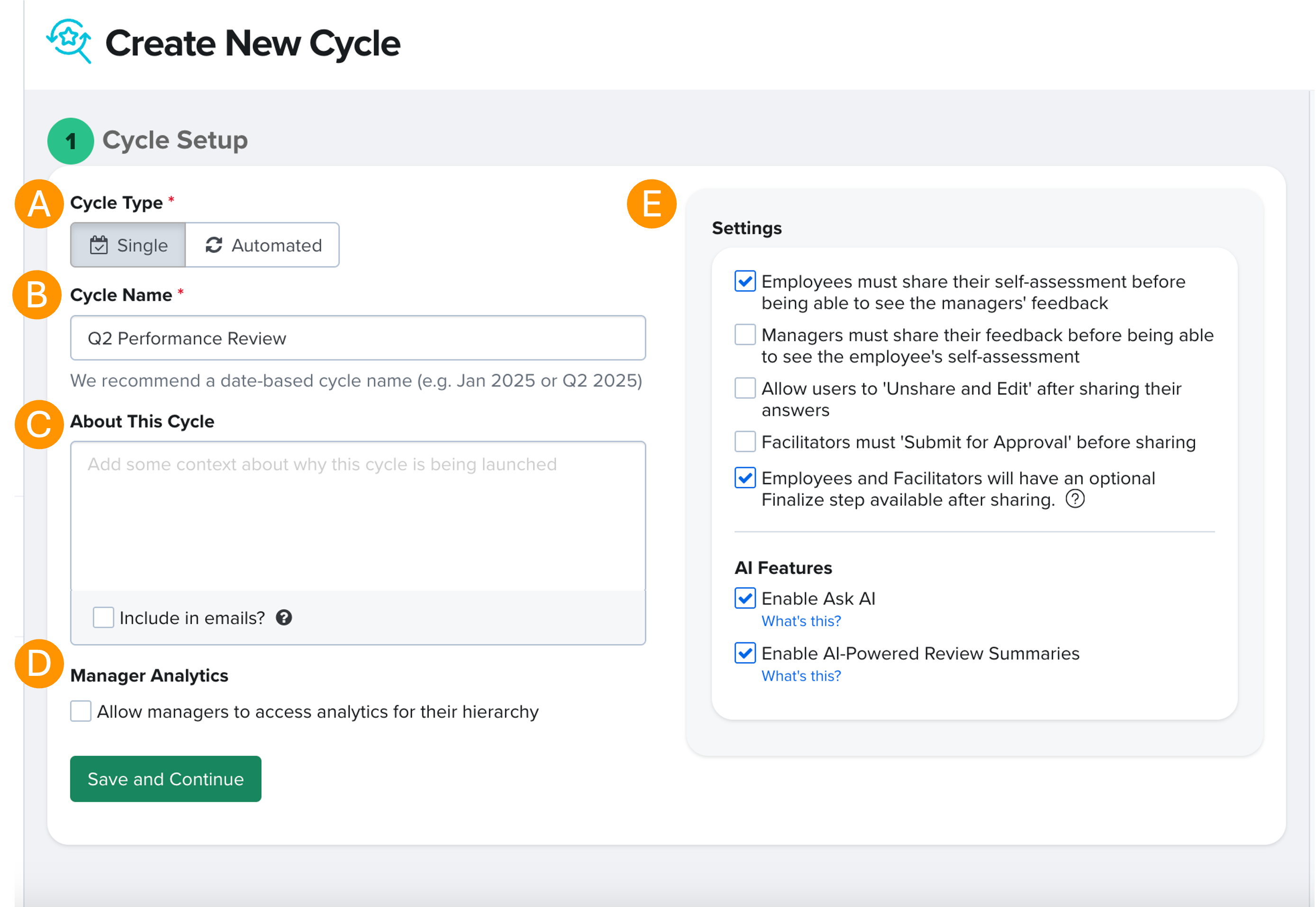 - C. About This Cycle: Optionally, enter any context or additional information about the cycle