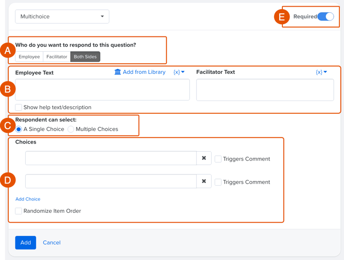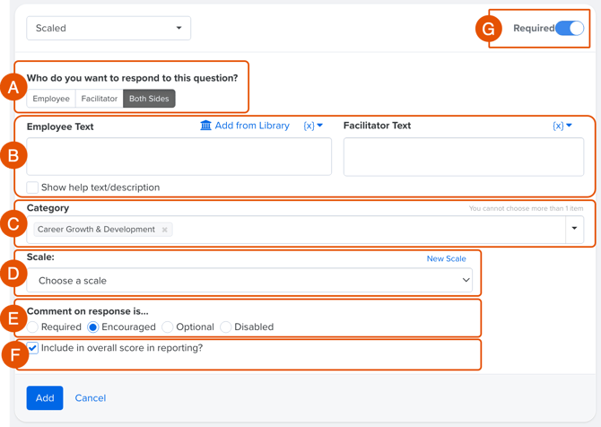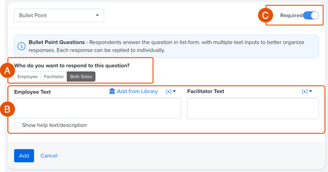 - Specify if the question should apply to the employee, facilitator, or both (Figure A)