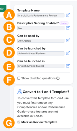 - G. Convert to 1-on-1 Template?: Quickly converts a Reviews Template into a 1-on-1 Template