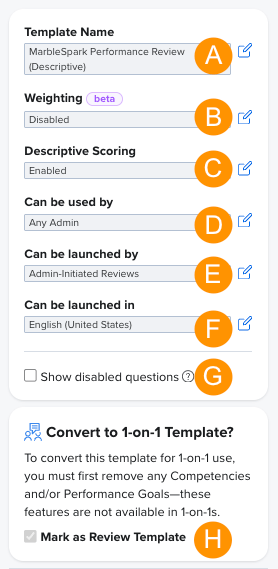 - H. Convert to 1-on-1 Template?: Quickly converts a Reviews Template into a 1-on-1 Template