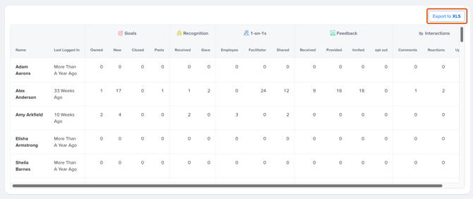 - Shared: The number of times this user shared their responses to a 1-on-1